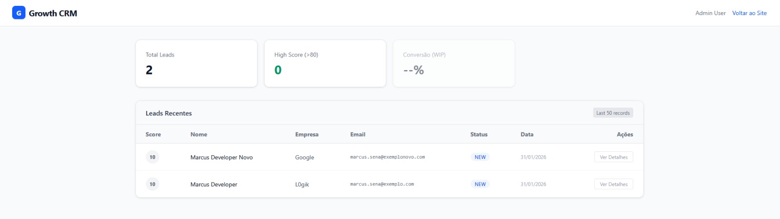 Bidirectional sync with Salesforce, HubSpot, and RD Station — enriching leads and feeding analytics.